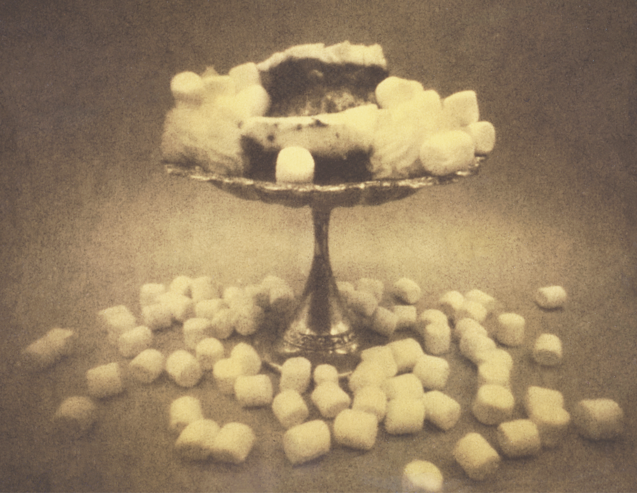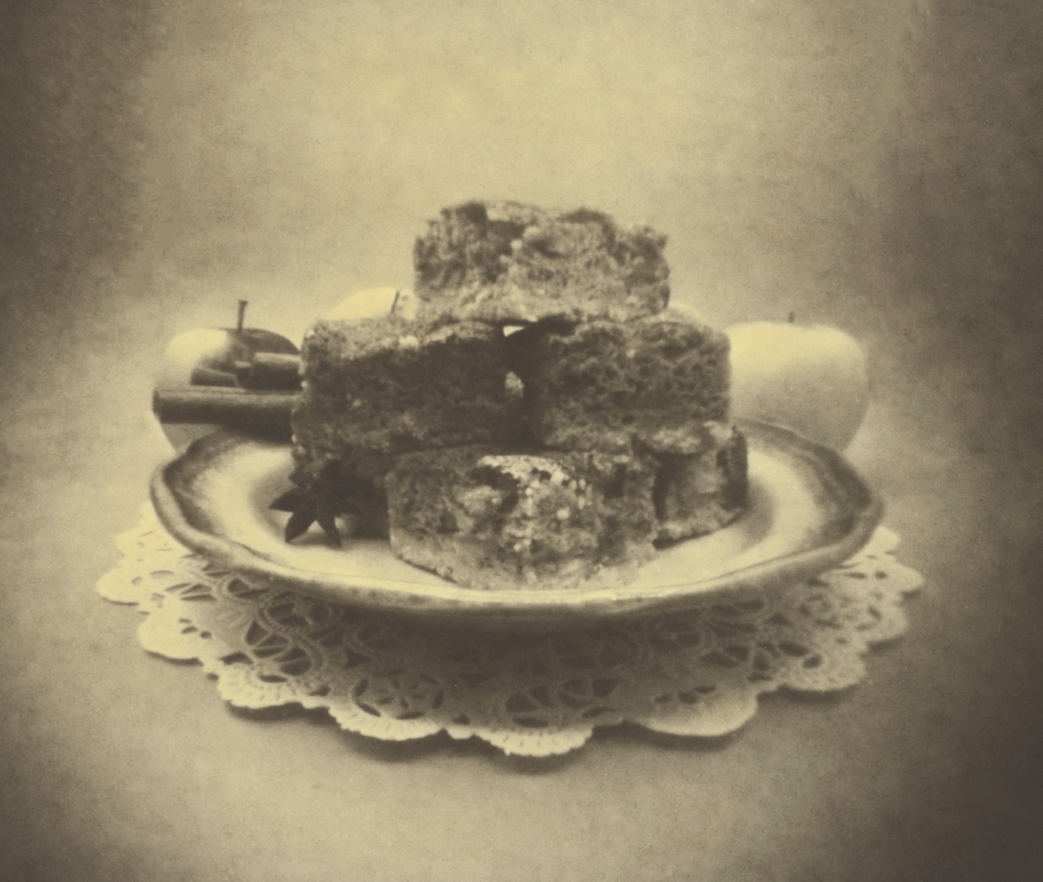 Digital enlargement of pinhole camera image depicting result of found recipe developed with apple juice. 3"x 5”. 2025.